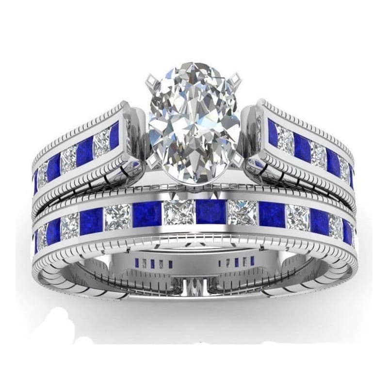 Material: acero bañado en oro blanco con piedras de cristal simil zafiro.