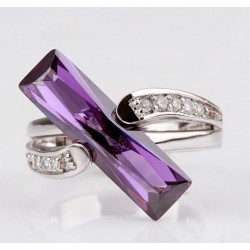 Exquisito anillo chapado en platino de circonita color púrpura engarzado en original fabricado en EEUU.