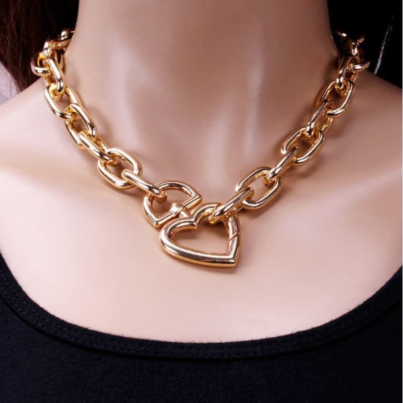 Los eslabones grandes son parte de su excelente diseño rematado con un corazón dorado. Gargantilla perfecta para llevar al cuello de cualquier mujer porque es moderno y a la vez muy elegante.